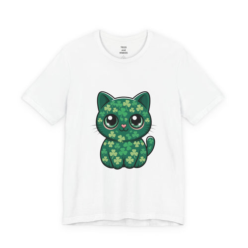 Clover Pattern Cute Cat T-Shirt | St. Patrick's Day Shamrock Kitty